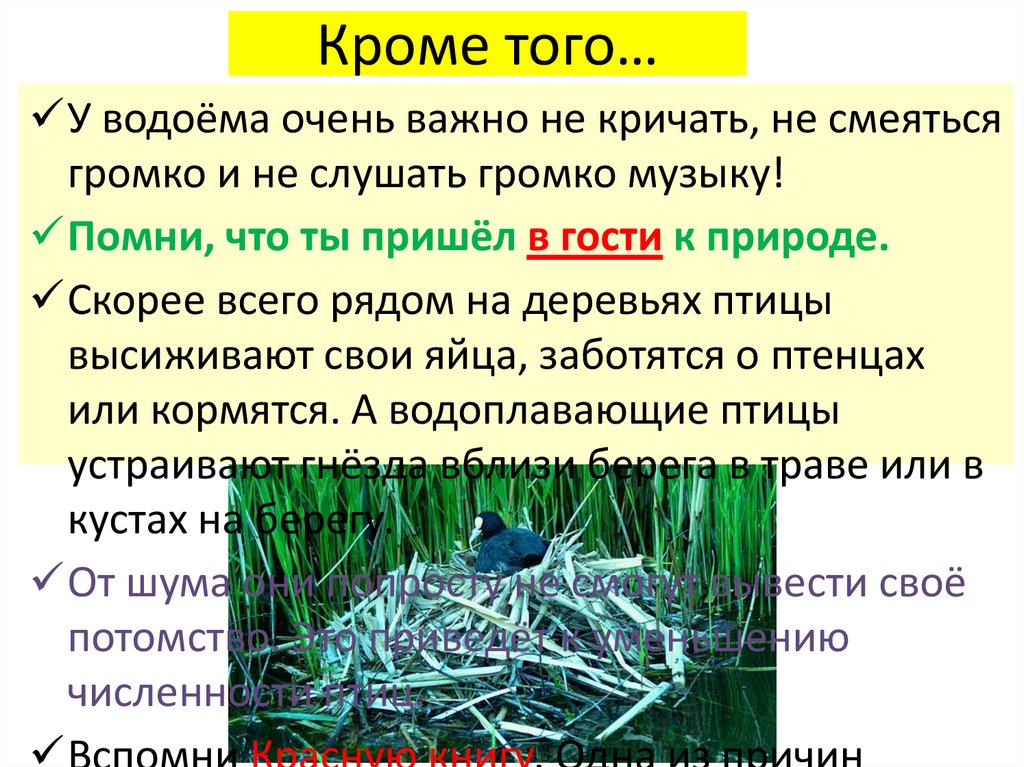 Кроме того…У водоёма очень важно не кричать, не смеяться