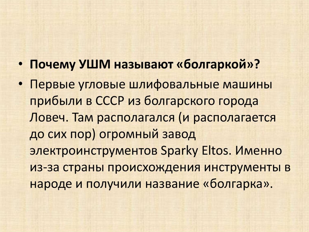 • Почему УШМ называют «болгаркой»?• Первые угловые шлифовальные машины