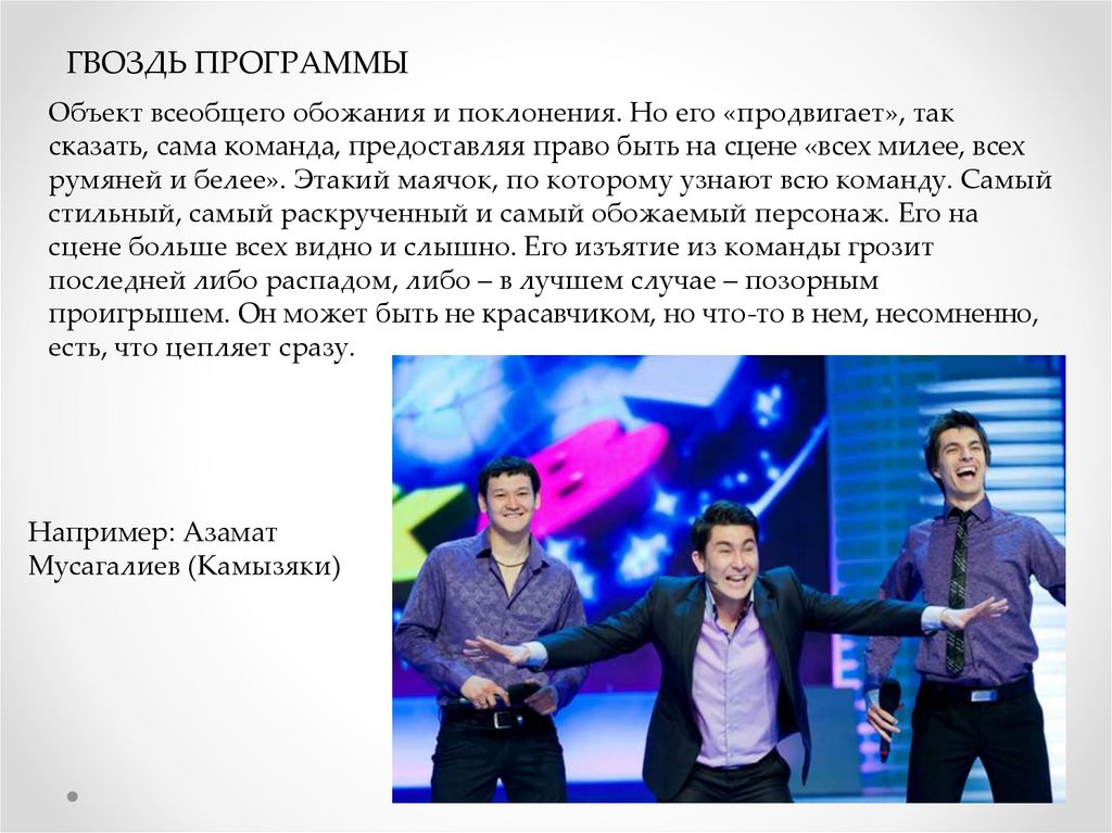 ГВОЗДЬ ПРОГРАММЫОбъект всеобщего обожания и поклонения. Но его «продвигает», так