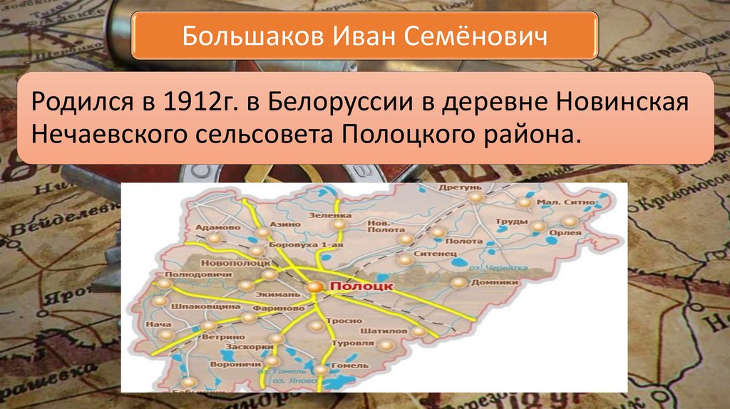 Большаков Иван СемёновичРодился в 1912г. в Белоруссии в деревне Новинская
