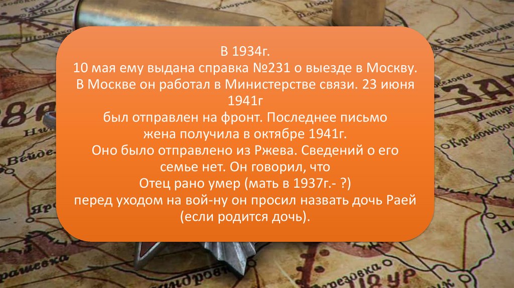 В 1934г.10 мая ему выдана справка №231 о выезде в Москву.