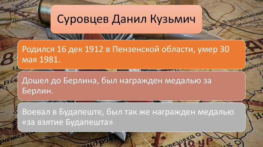 Суровцев Данил КузьмичРодился 16 дек 1912 в Пензенской области, умер 30