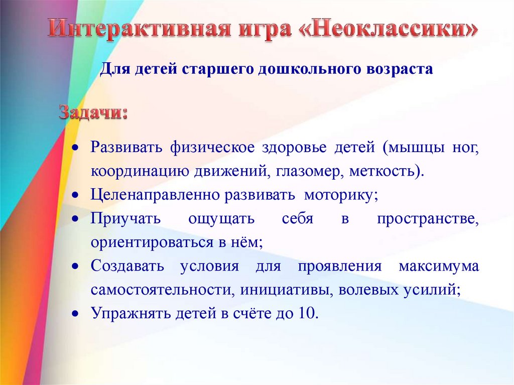 Для детей старшего дошкольного возрастаРазвивать физическое здоровье детей (мышцы ног,