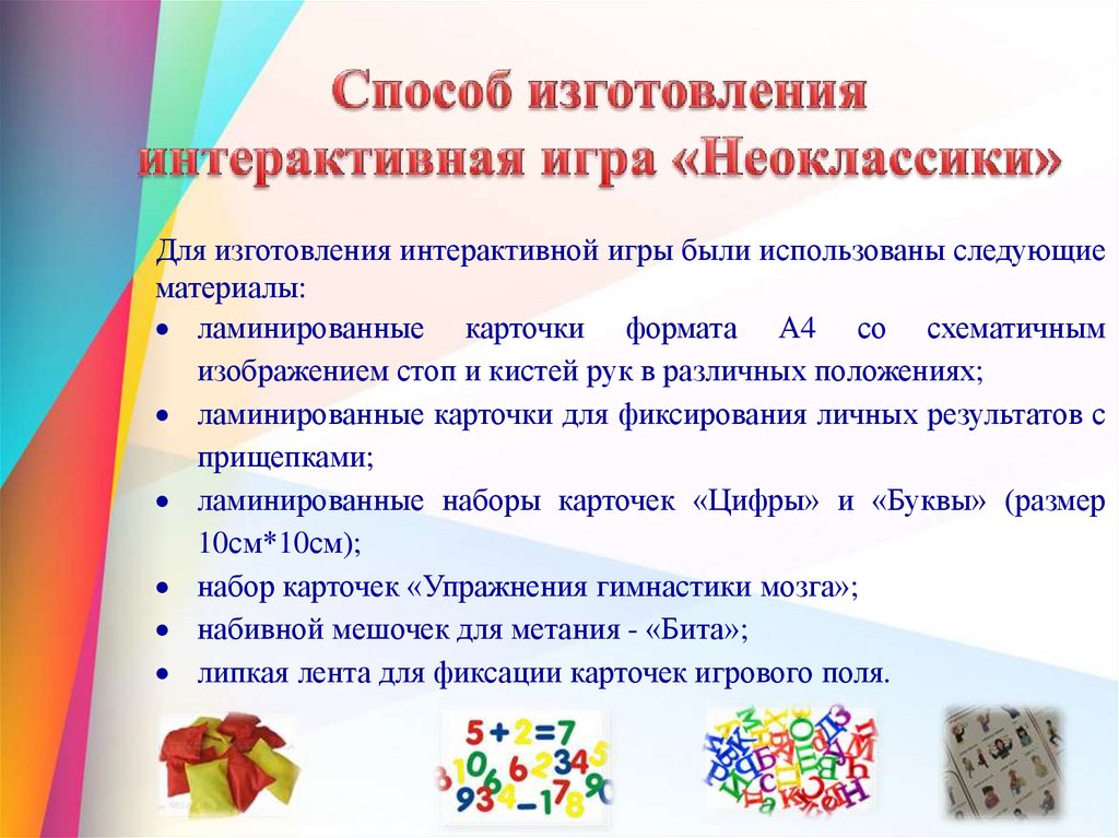 Для изготовления интерактивной игры были использованы следующиематериалы: