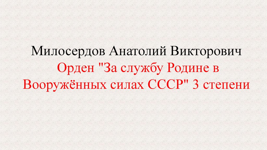 Милосердов Анатолий ВикторовичОрден "За службу Родине в
