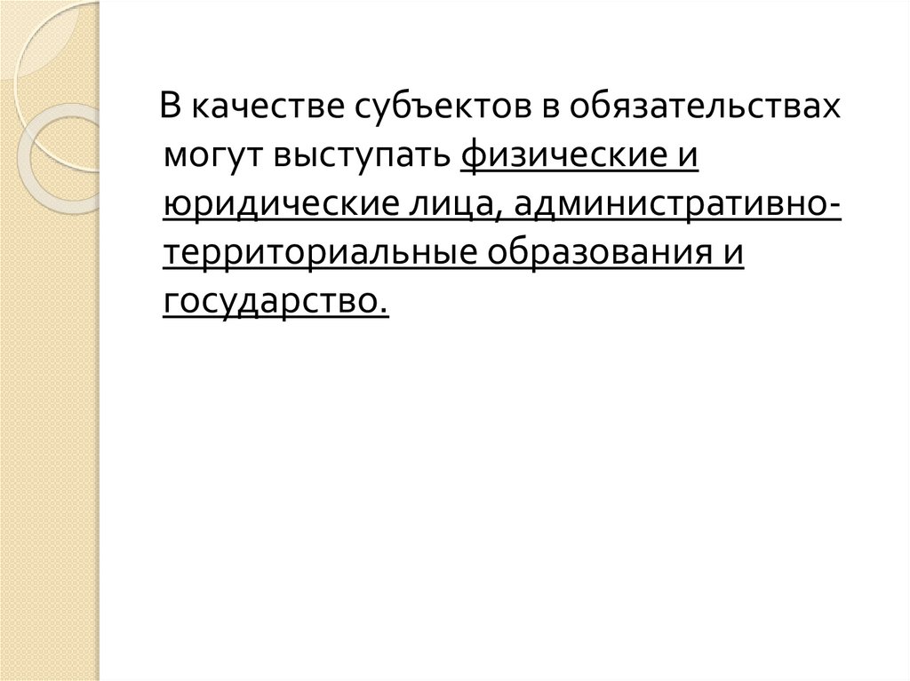 В качестве субъектов в обязательствахмогут выступать физические и