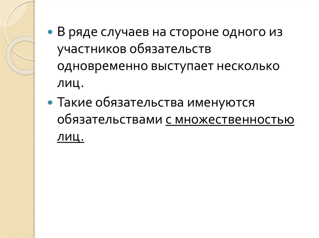 В ряде случаев на стороне одного изучастников обязательств