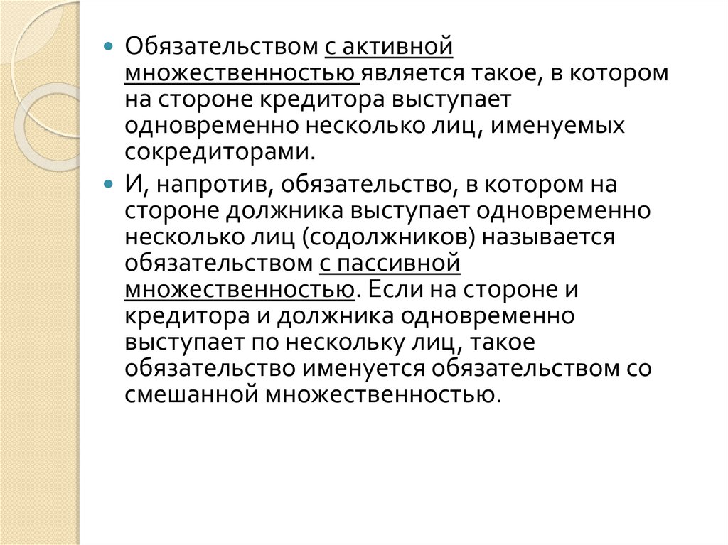 Обязательством с активноймножественностью является такое, в котором