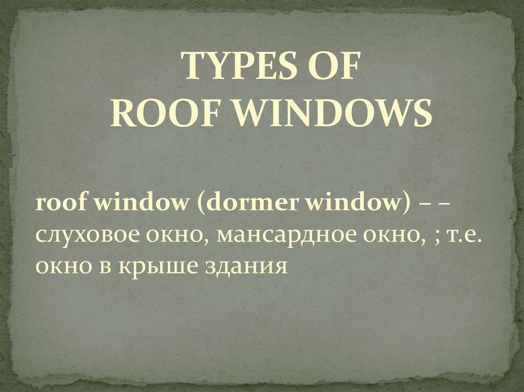 roof window (dormer window) – –слуховое окно, мансардное окно, ; т.е.