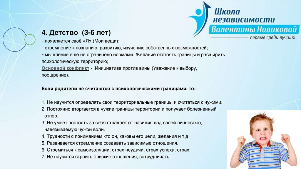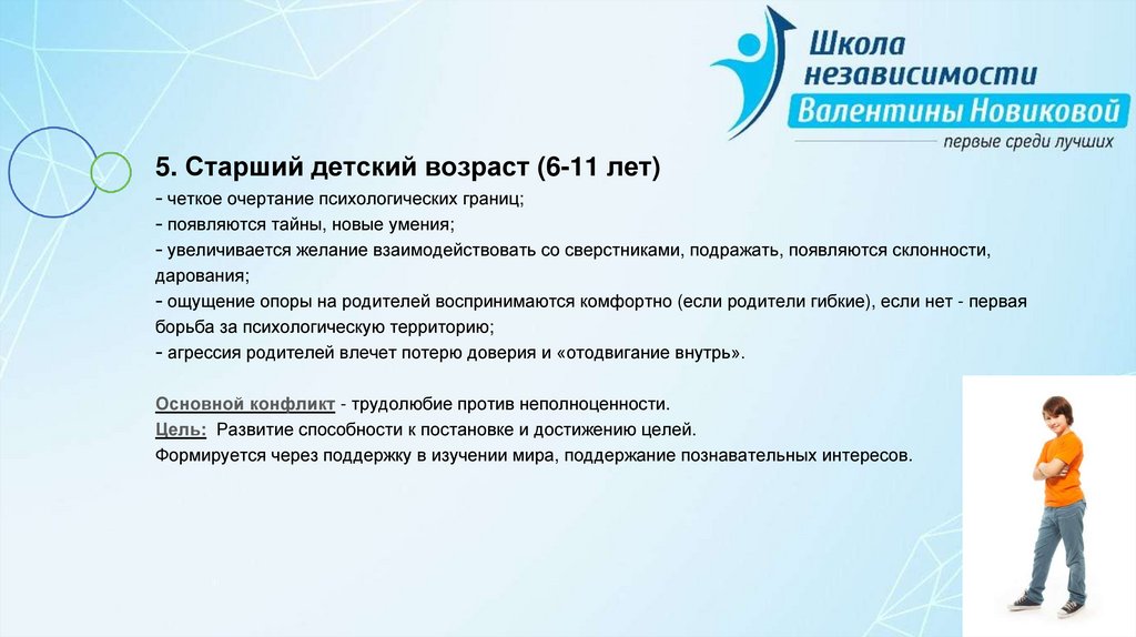 5. Старший детский возраст (6-11 лет)- четкое очертание психологических границ;