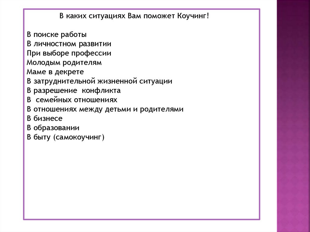 Коучинг -личностного ростаКоучинг жизненных ситуаций