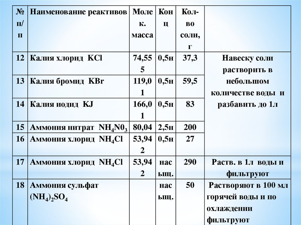 16 Аммония хлорид NH4Cl 53,94 0,5н 27