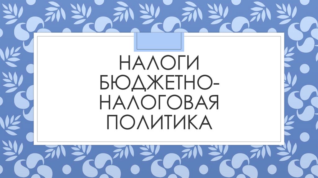 1. Налоги Бюджетно-налоговая политика