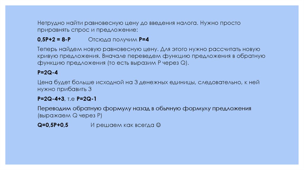 Нетрудно найти равновесную цену до введения налога. Нужно простоприравнять спрос и предложение: