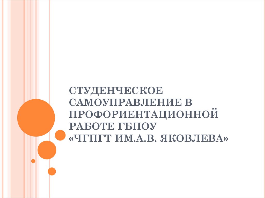 СТУДЕНЧЕСКОЕ САМОУПРАВЛЕНИЕ В ПРОФОРИЕНТАЦИОННОЙ РАБОТЕ ГБПОУ «ЧГПГТ ИМ.А.В. ЯКОВЛЕВА»