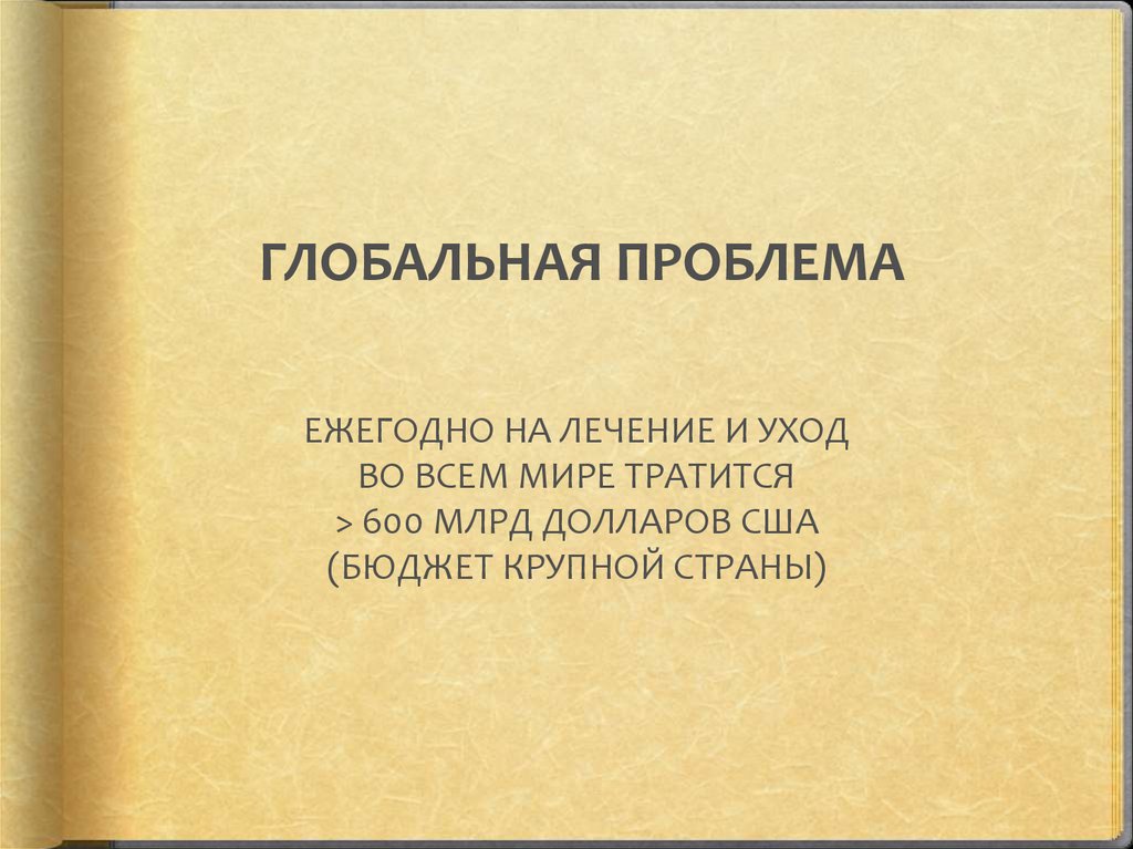 ГЛОБАЛЬНАЯ ПРОБЛЕМАЕЖЕГОДНО НА ЛЕЧЕНИЕ И УХОД