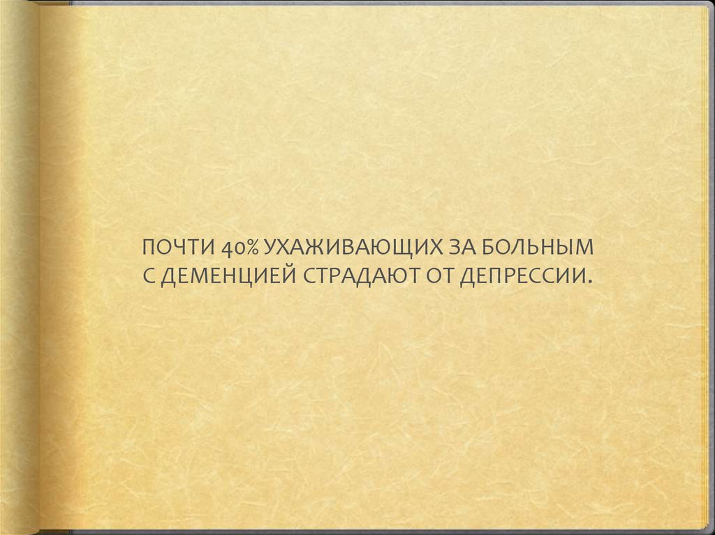 ПОЧТИ 40% УХАЖИВАЮЩИХ ЗА БОЛЬНЫМС ДЕМЕНЦИЕЙ СТРАДАЮТ ОТ ДЕПРЕССИИ.