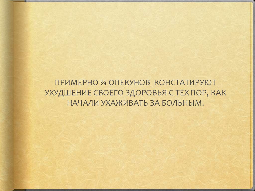 ПРИМЕРНО ¾ ОПЕКУНОВ КОНСТАТИРУЮТУХУДШЕНИЕ СВОЕГО ЗДОРОВЬЯ С ТЕХ ПОР, КАК