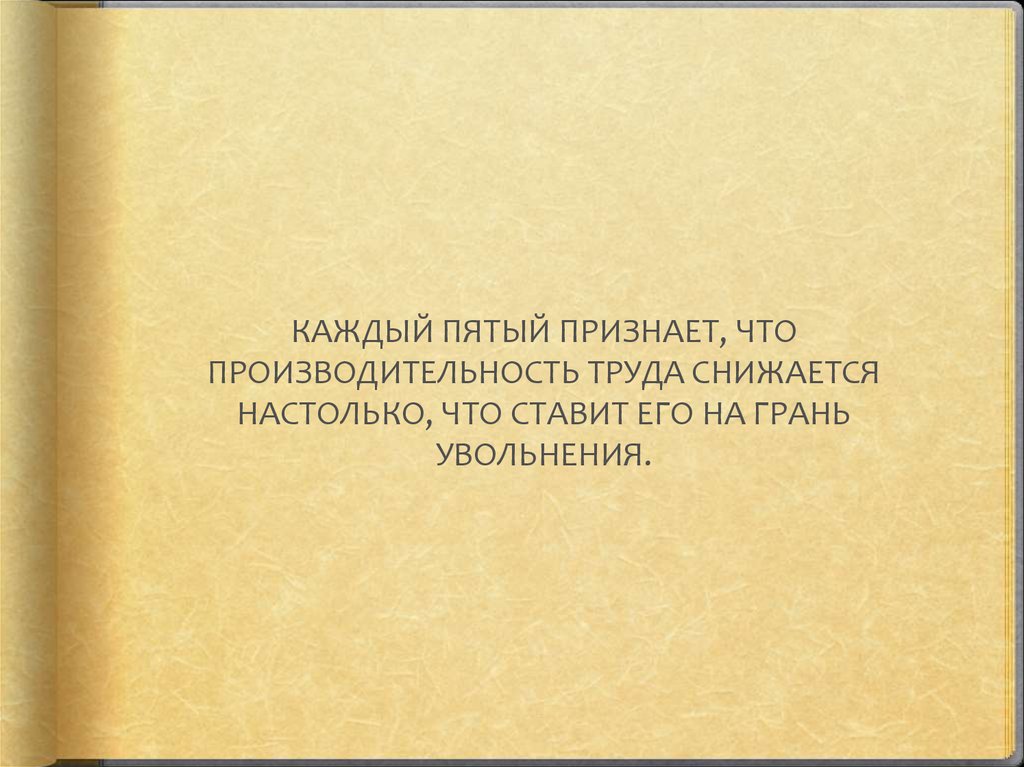 КАЖДЫЙ ПЯТЫЙ ПРИЗНАЕТ, ЧТОПРОИЗВОДИТЕЛЬНОСТЬ ТРУДА СНИЖАЕТСЯ