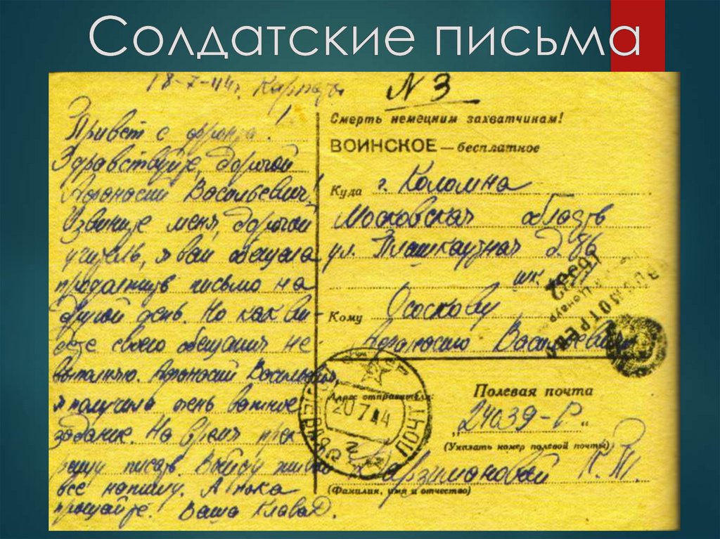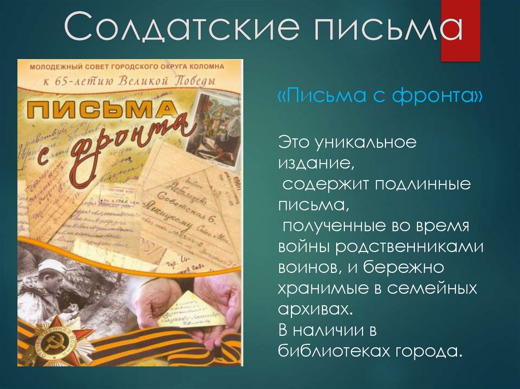 «Письма с фронта»Это уникальное