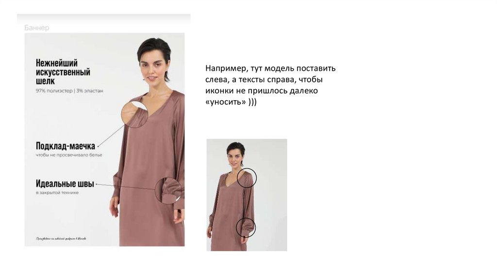 Например, тут модель поставитьслева, а тексты справа, чтобы