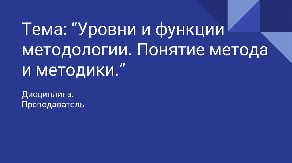 Тема: “Уровни и функцииметодологии. Понятие метода
