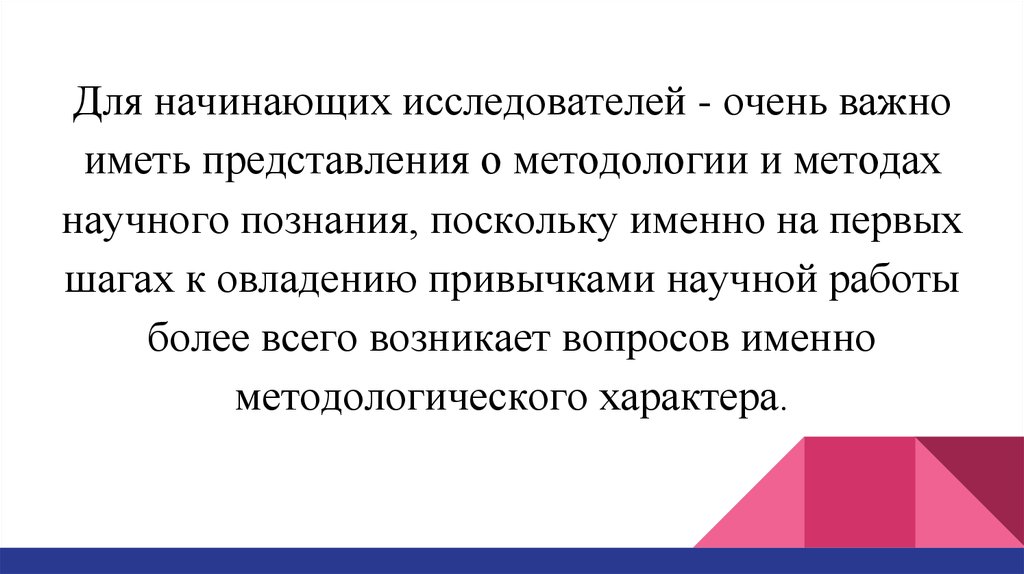 Для начинающих исследователей - очень важноиметь представления о методологии и методах