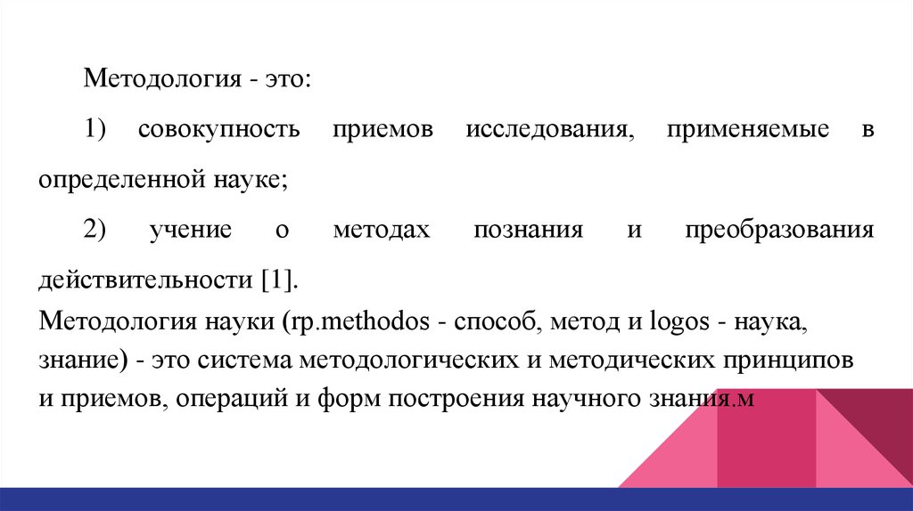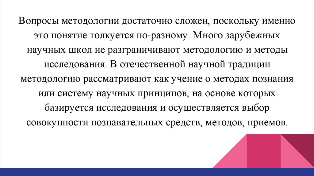 Вопросы методологии достаточно сложен, поскольку именноэто понятие толкуется по-разному. Много зарубежных