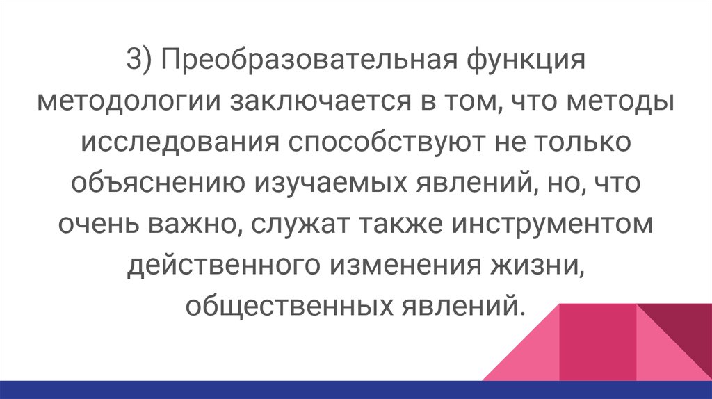3) Преобразовательная функцияметодологии заключается в том, что методы