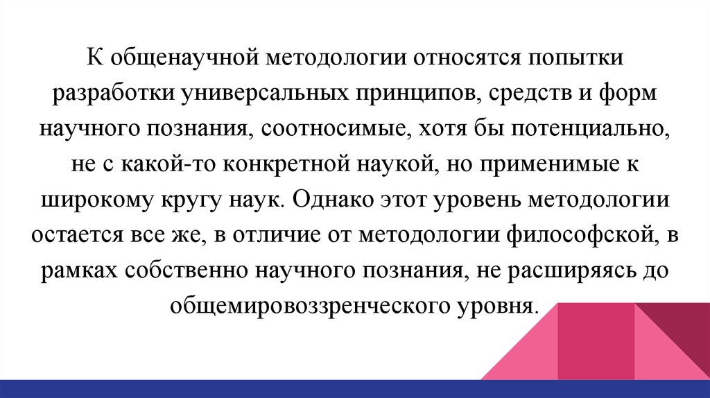 К общенаучной методологии относятся попыткиразработки универсальных принципов, средств и форм