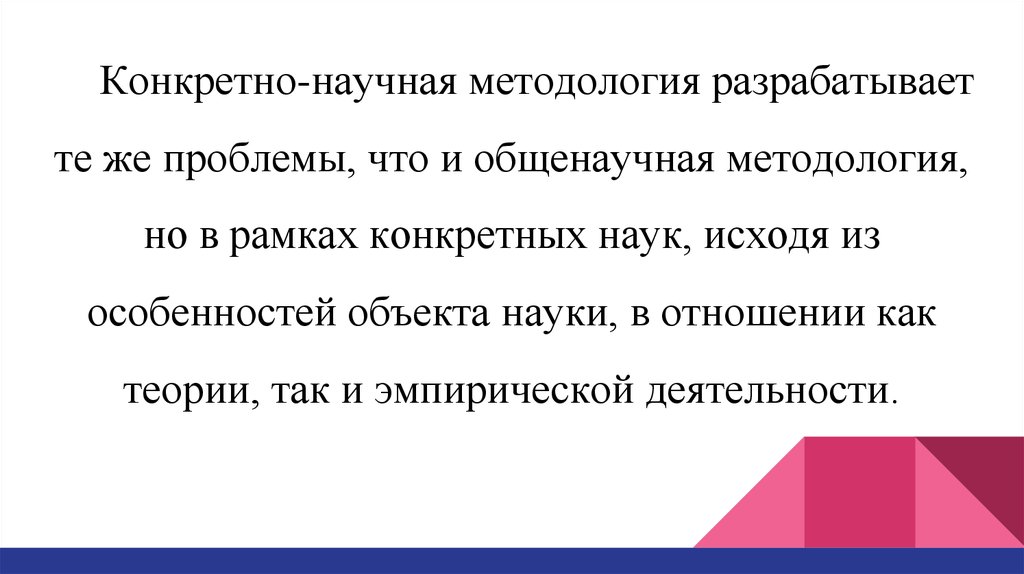Конкретно-научная методология разрабатываетте же проблемы, что и общенаучная методология,