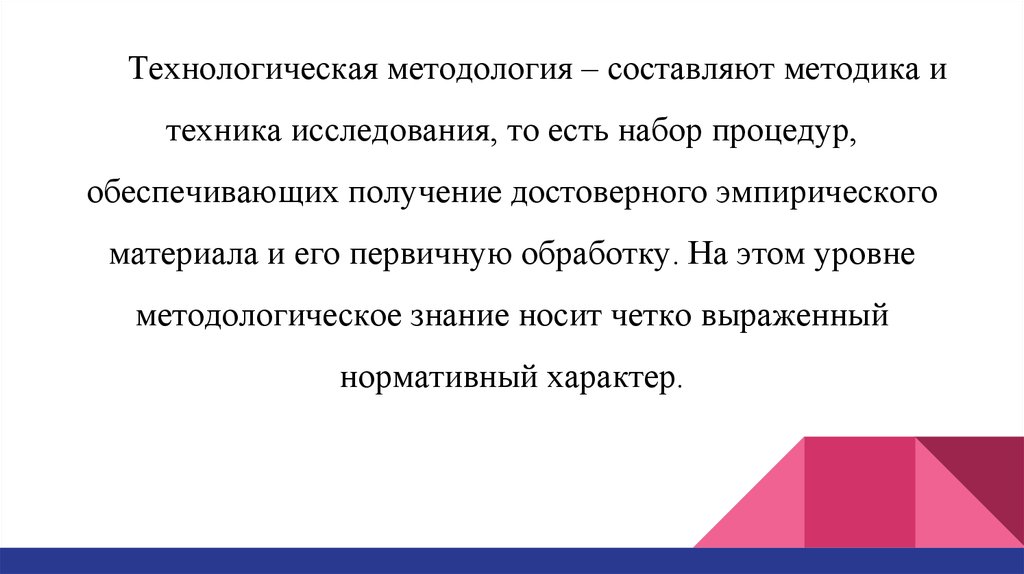 Технологическая методология – составляют методика итехника исследования, то есть набор процедур,
