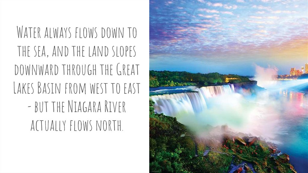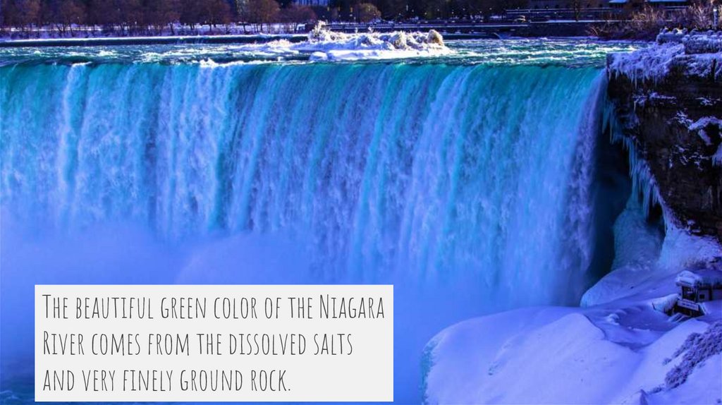 The beautiful green color of the NiagaraRiver comes from the dissolved salts