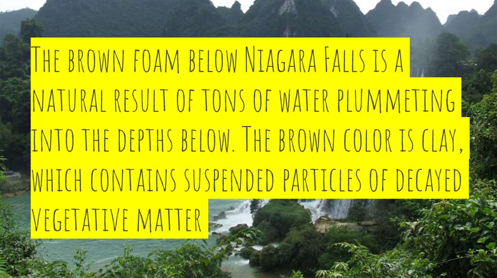 The brown foam below Niagara Falls is anatural result of tons of water plummeting