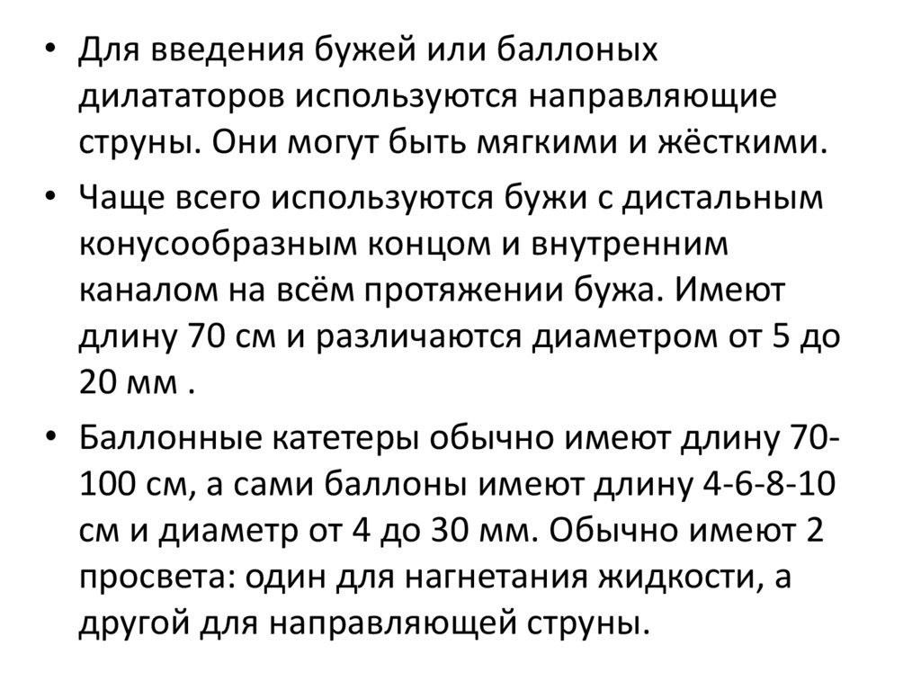 • Для введения бужей или баллоныхдилататоров используются направляющие