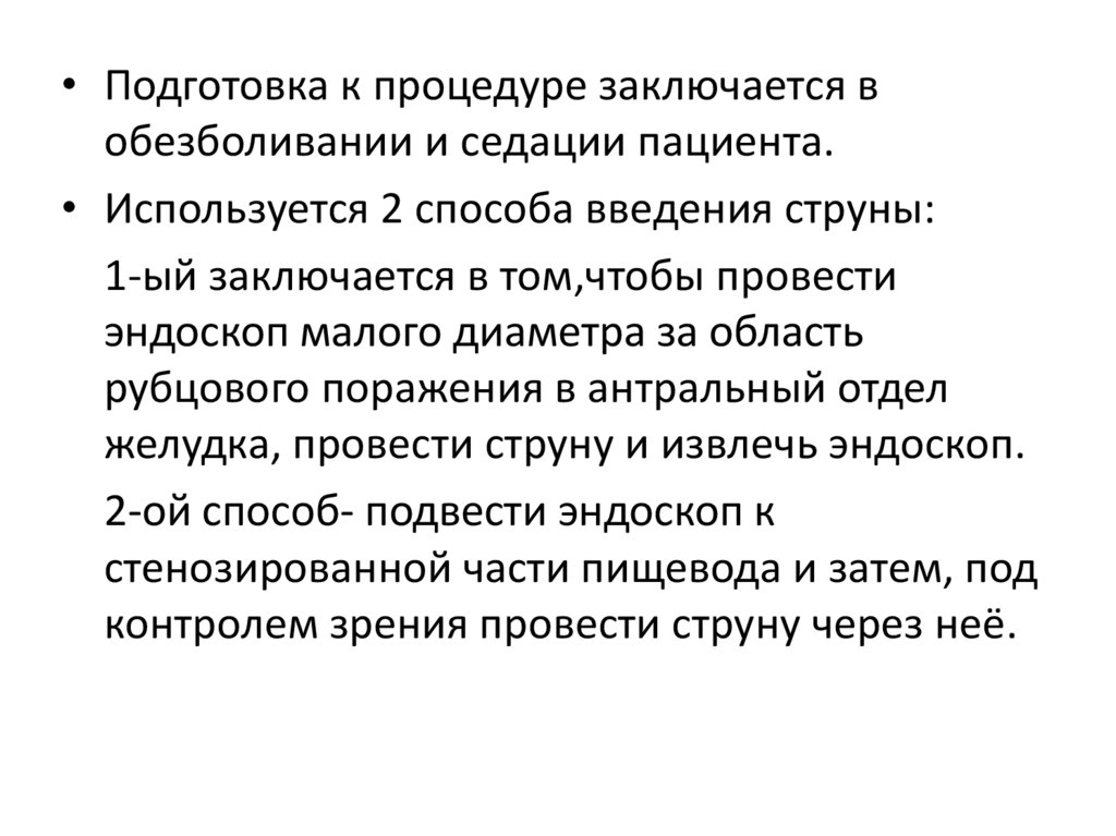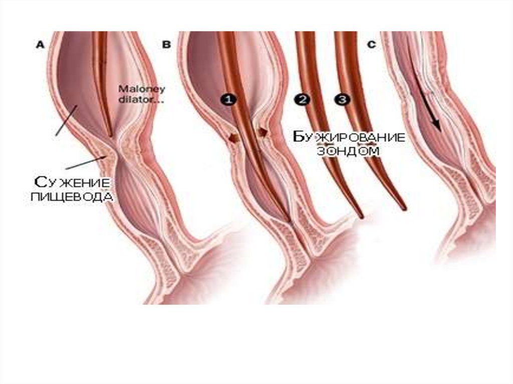 2. 1.Бужирование вслепую 2.Бужирование через жёсткий эзофагоскоп 3.Бужирование за нить или по нити 4.Бужирование или балонная