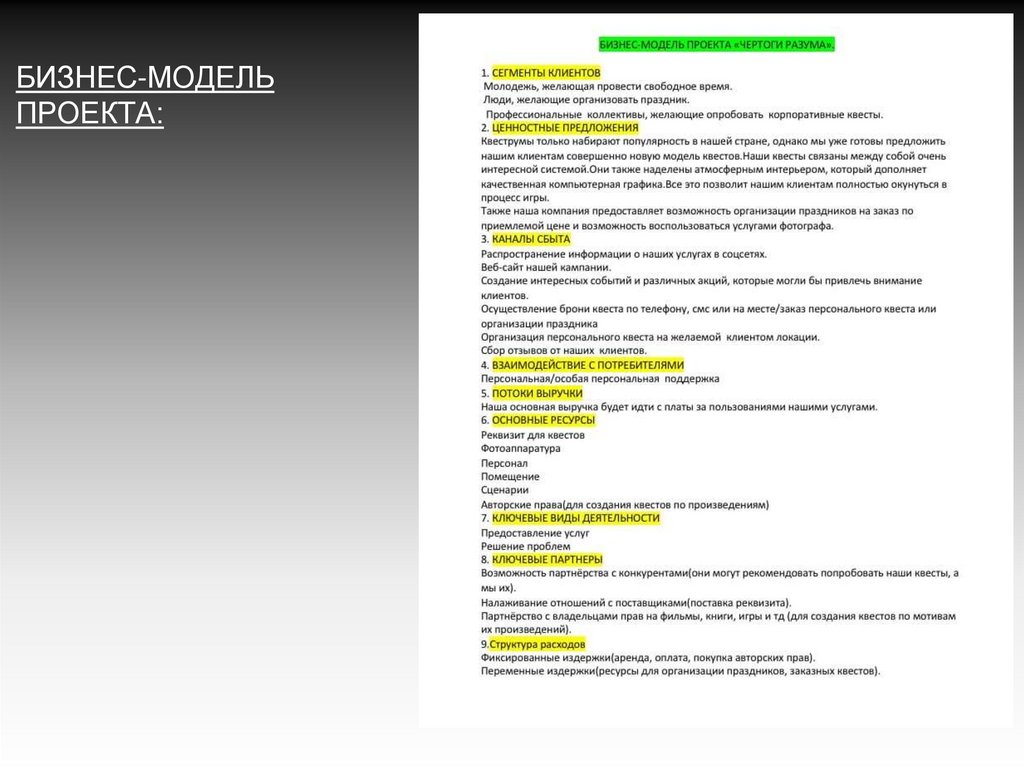 БИЗНЕС-МОДЕЛЬПРОЕКТА: