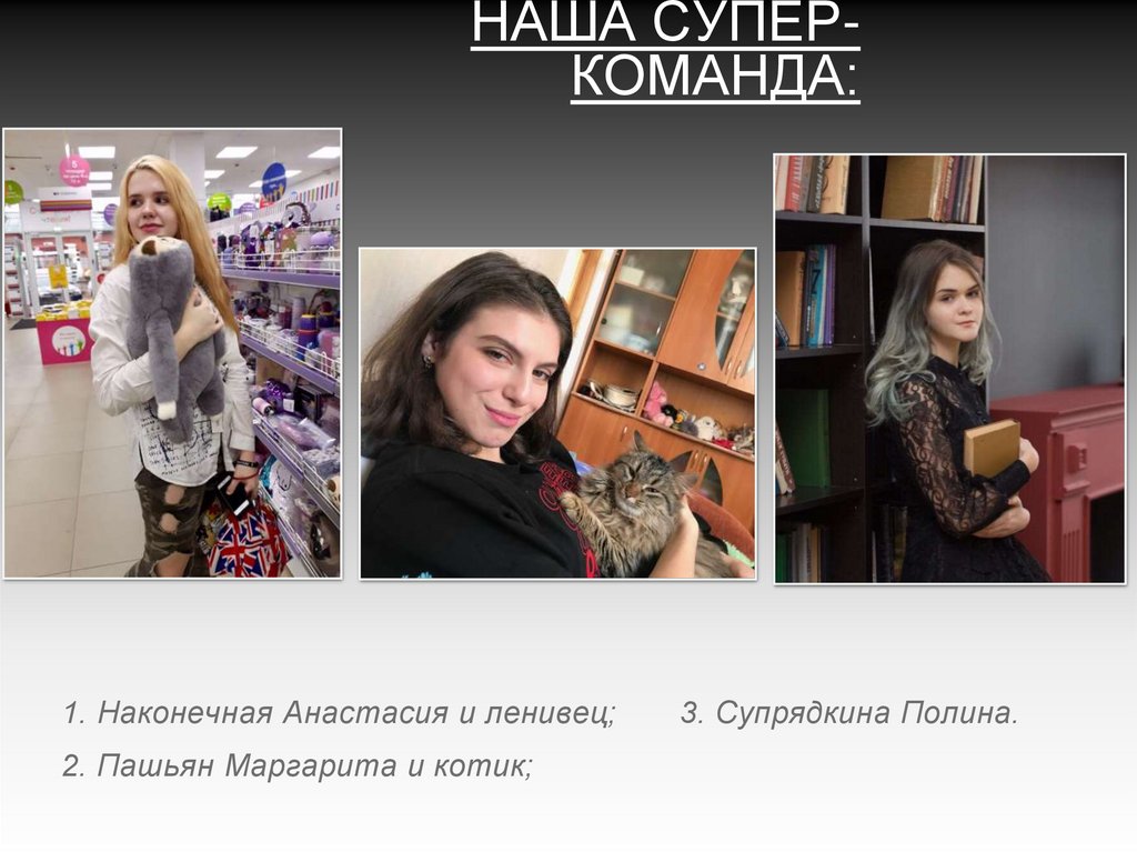 НАША СУПЕРКОМАНДА:1. Наконечная Анастасия и ленивец;