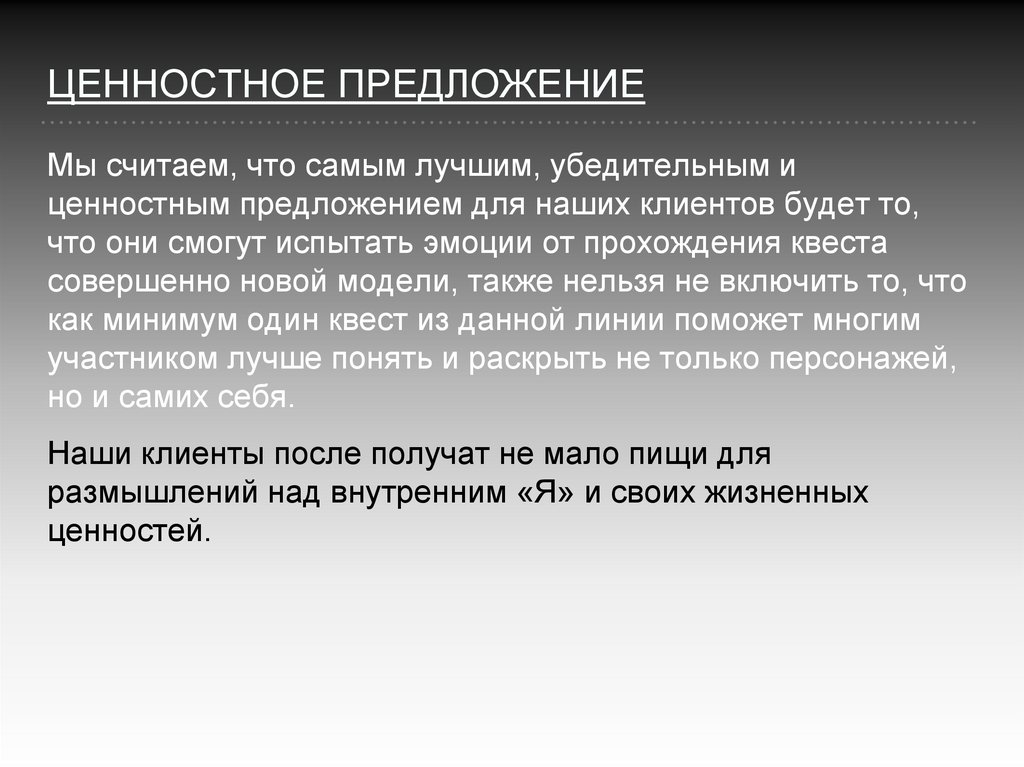 ЦЕННОСТНОЕ ПРЕДЛОЖЕНИЕМы считаем, что самым лучшим, убедительным и
