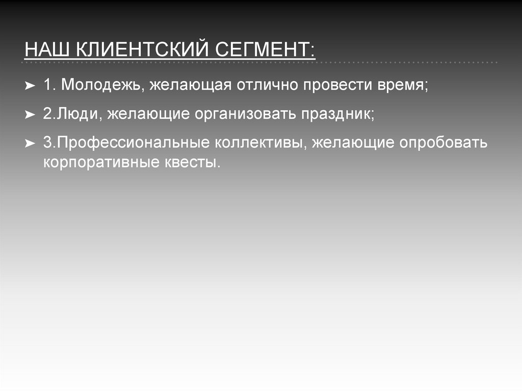 НАШ КЛИЕНТСКИЙ СЕГМЕНТ:➤