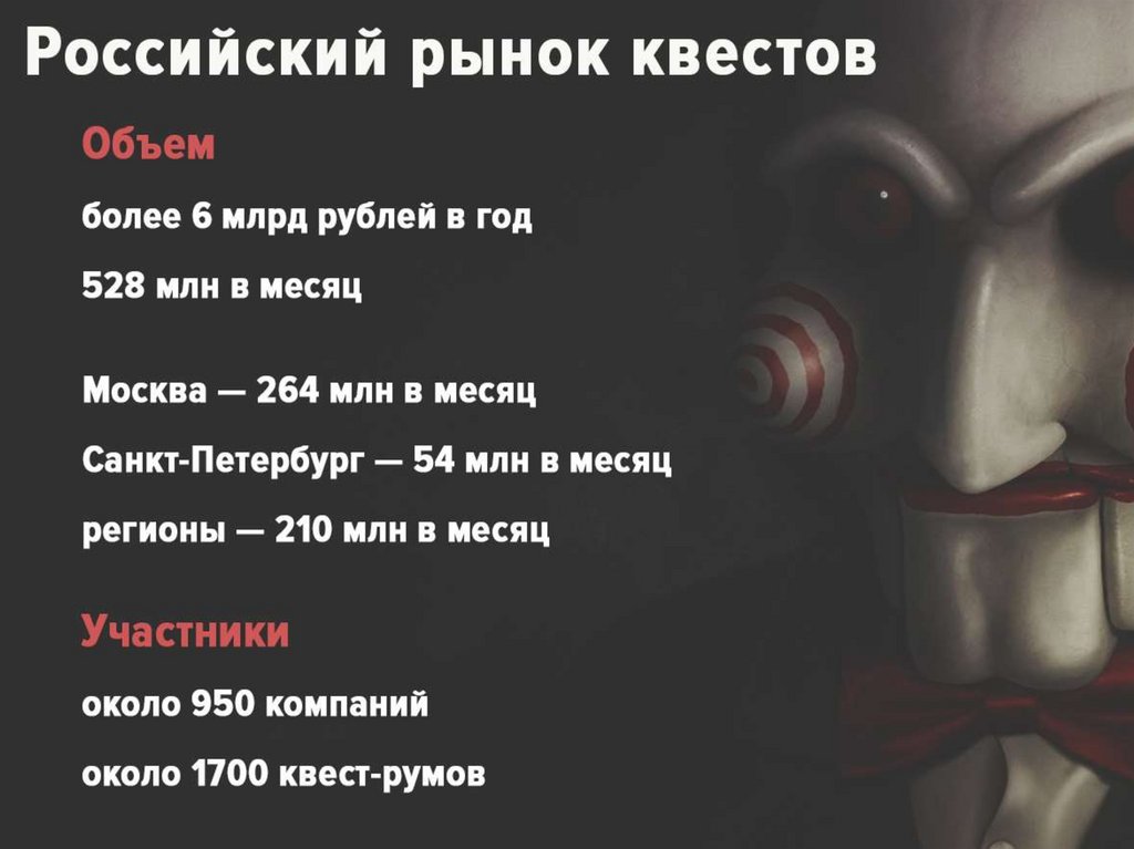 крупных франшиз до владельцев одного квест-рума. Квесты