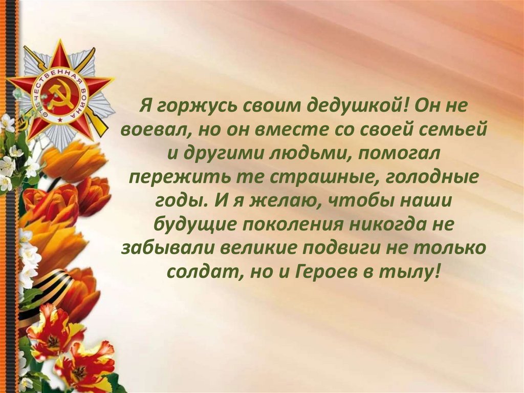 Я горжусь своим дедушкой! Он невоевал, но он вместе со своей семьей