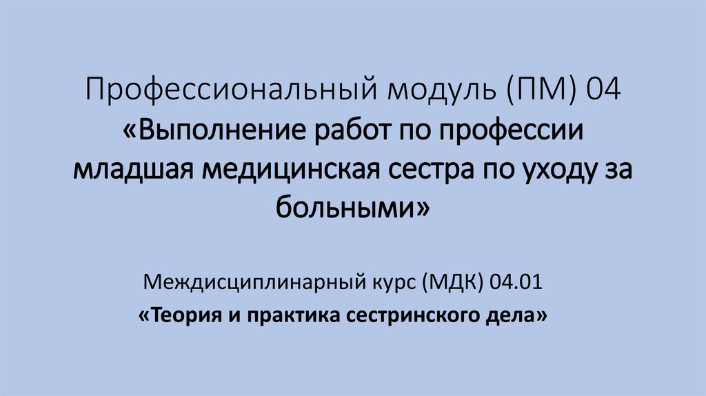 Междисциплинарный курс (МДК) 04.01«Теория и практика сестринского дела»