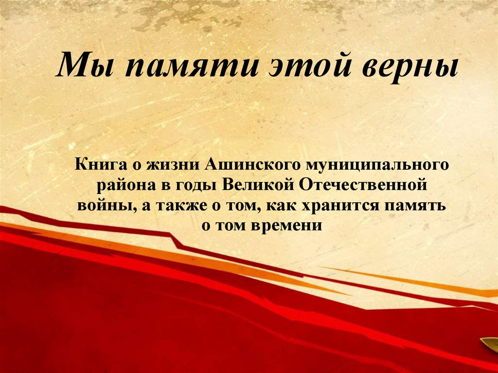 Книга о жизни Ашинского муниципальногорайона в годы Великой Отечественной