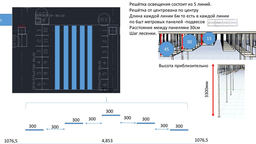 Решётка освещения состоит из 5 линий.Решётка от центрована по центру