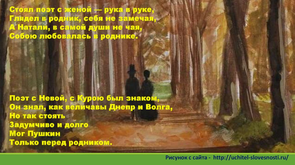 Стоял поэт с женой — рука в руке,Глядел в родник, себя не замечая,