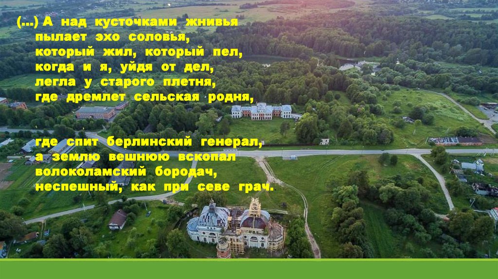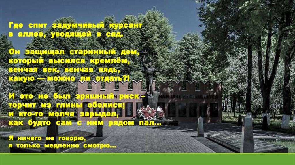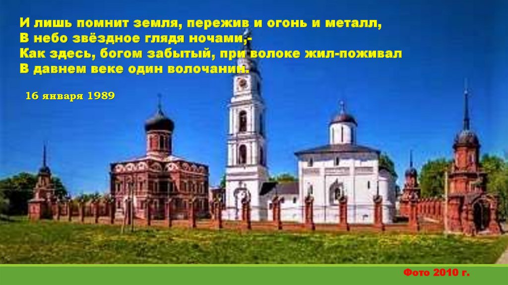 Волоколамск...Пронзая глубь времён,Твой русский дух по-богатырски волен.