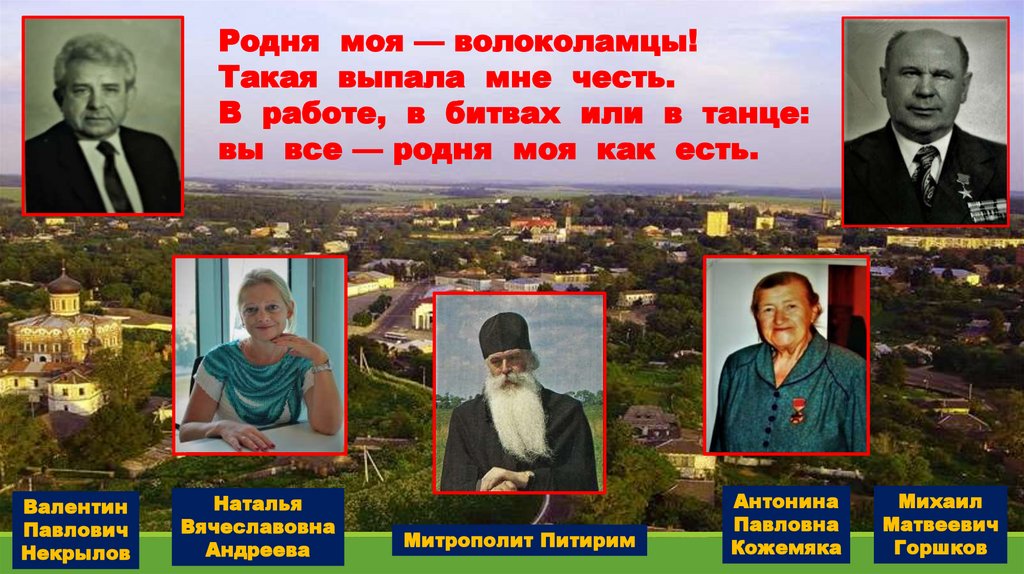 Родня моя — волоколамцы!Такая выпала мне честь.