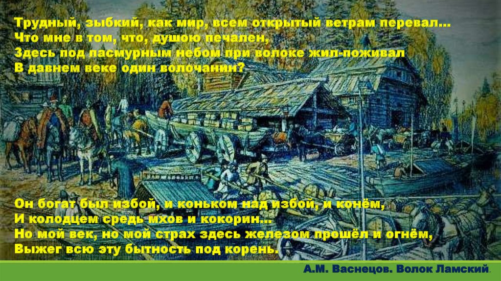 И лишь помнит земля, пережив и огонь и металл,В небо звёздное глядя ночами,Как здесь, богом забытый, при волоке жил-поживал