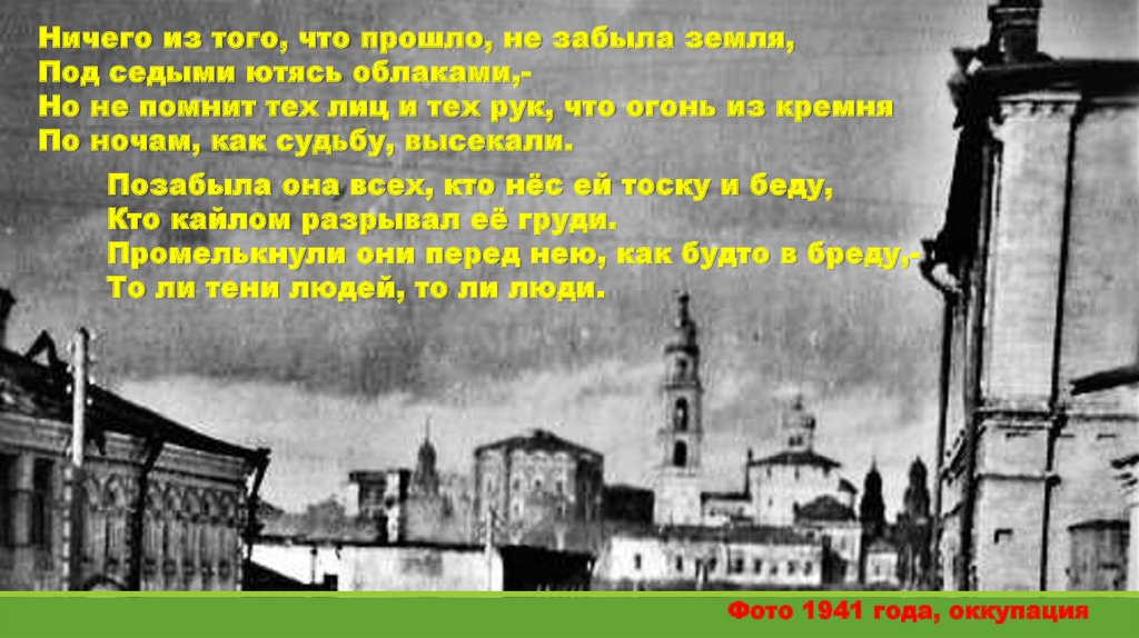 Ничего из того, что прошло, не забыла земля,Под седыми ютясь облаками,Но не помнит тех лиц и тех рук, что огонь из кремня